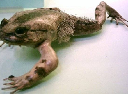 毛蛙又叫“骨折蛙”,当受到威胁时,它们会折断自己的骨头,并从皮肤里伸出来,形成爪子,以恐吓敌人。它们的这个特点有点类似科幻故事中的“金刚狼”。